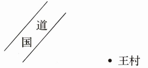 (画图步骤:以王村为端点,使用三角尺的直角边与国道重合,另一直角边过王村点,沿该直角边画出线段与国道相交,此线段即为所求最短路线。)