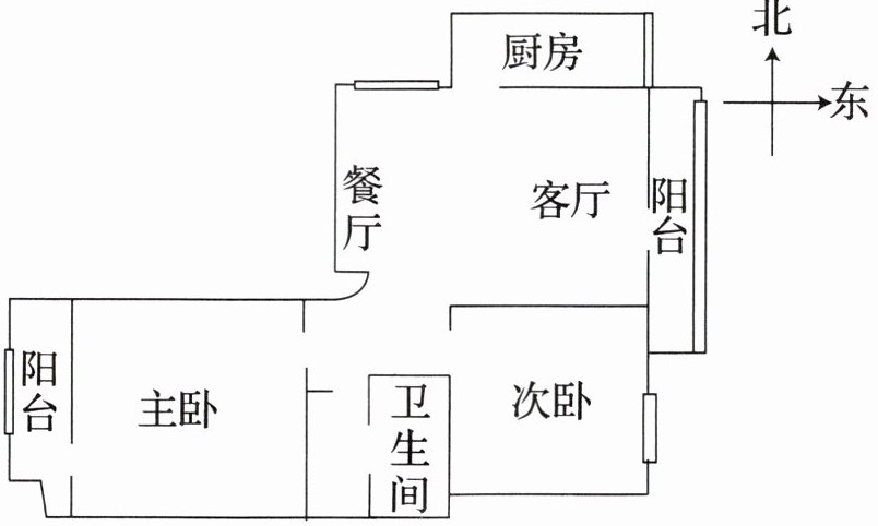 互相平行的线段:选择客厅的上边线和厨房的下边线(均为横向线段)用红笔描出。