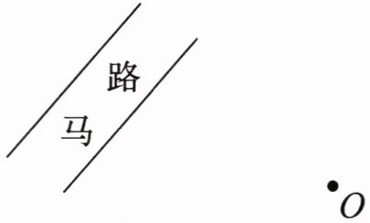 (2)小明要从 $O$ 点出发横穿马路,怎样走最近?画一画。