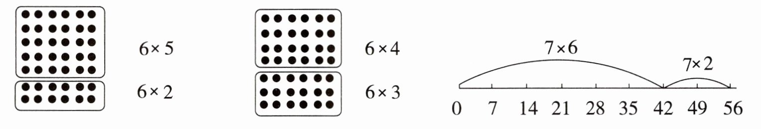 $6×7 = 6×5+6×2$;$6×7 = 6×4+6×3$;$7×8 = 7×6+7×2$