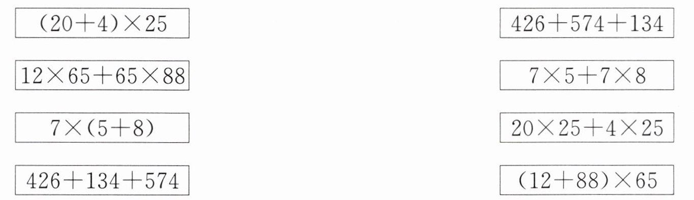 $(20 + 4)×25$—$20×25 + 4×25$