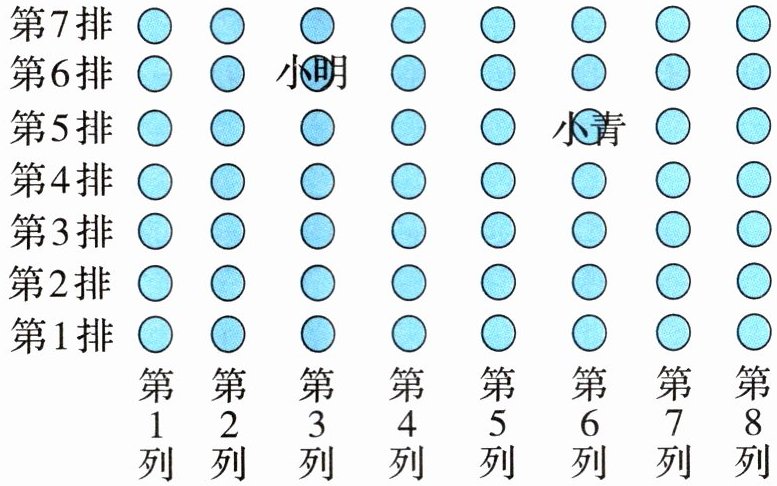 (2)小华的位置用数对表示是(4,5),小晴的位置用数对表示是(6,4),在下图中标出他们的位置,并说一说他们分别坐在第几列,第几排。