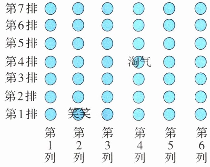 (1)淘气和笑笑的座位用数对分别表示为