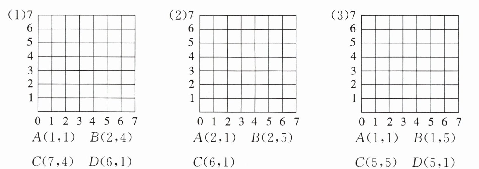 3. 下列数对表示了图形顶点的位置,在图中找一找,并顺次把顶点连起来,看一看画出的是什么图形。