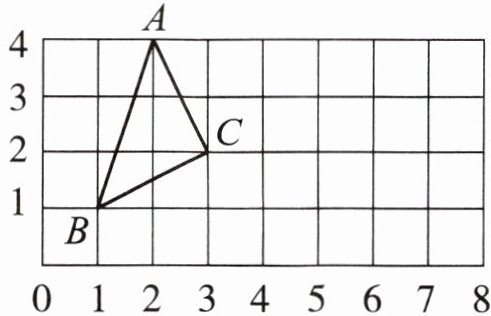 (2)把三角形$ABC$向右平移两格,画出得到的三角形$A'B'C'$。三个顶点的位置分别是$A'$(