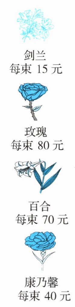 (3)小明带了 160 元,如果只买一种花,要正好用完,他可以买哪种花? 买多少束?