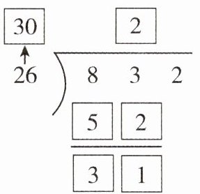3. 下面是笑笑计算$832 ÷ 26$的过程。