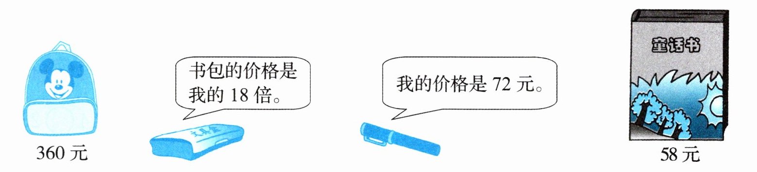 (3)一本童话书的价格是58元,估一估,买一个书包的钱大约可以买几本童话书?