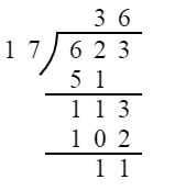 错误:商个位5过小(17×5=85,113-85=28>17)