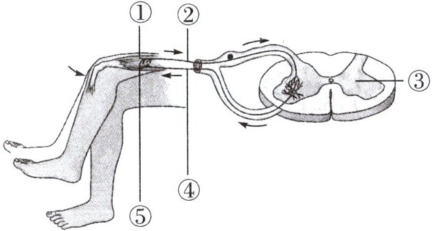 2. 下图为膝跳反射基本过程的示意图。叩击后,神经冲动在反射弧中传递的正确顺序是( )