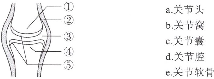1.骨 关节 肌肉 2.①—a ②—c ③—d ④—b ⑤—e 3.骨骼肌 肌腹 肌腱