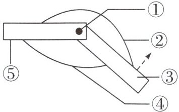 12. 为探究哺乳动物运动的原理,某课外活动小组制作了一个肌肉牵动骨运动的模型,如下图所示。图中①为铁钉,②和④为松紧带,③和⑤为硬纸片。请据图回答下列问题。