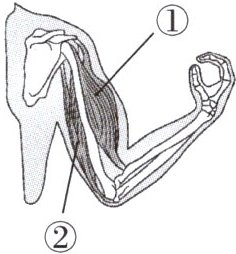 (3)做引体向上时,将身体拉至最高位置的过程中,需要骨骼肌的收缩,图中的①肱二头肌与②肱三头肌都处于收缩状态。