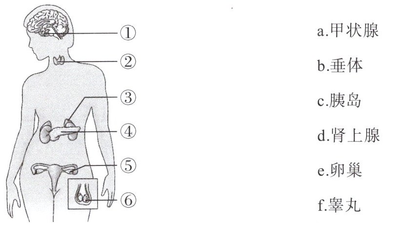 3. 人体主要的内分泌腺(将图中序号代表的内分泌腺与其名称连线)