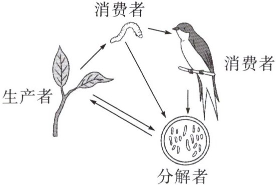 4. 下图为生产者、消费者和分解者的关系示意图,其中的“箭头”表示( )