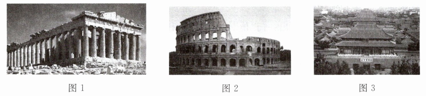 (2)图1为雅典的帕特农神庙;图2为罗马大竞技场;图3为北京故宫。