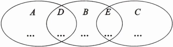 8. 如图,已知A是整数集合,B是正数集合,C是分数集合,D是A和B的重叠部分,E是B和C的重叠部分。
