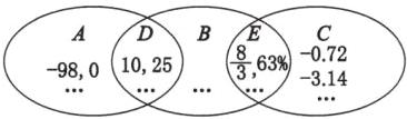 (2)给出下列各数:10,-0.72,0,-98,25,$\frac{8}{3}$,63%,-3.14。请将它们填入图中相应的集合。