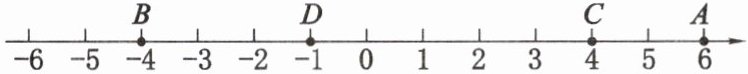点A表示的数为6,点B表示的数为-4,点C表示的数为4,点D表示的数为-1.