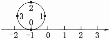 14. 如图,圆的周长为4个单位长度,在该圆的4等分点处分别标上0,1,2,3,先让圆周上表示数字0的点与数轴上表示$-1$的点重合,再将圆沿着数轴向右滚动,则圆周上表示数______的点与数轴上表示2023的点重合。