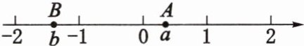 9. 如图,数轴上点 $A$,$B$ 分别表示数 $a$,$b$,则 $a + b$______$0$。(填“$>$”“$<$”或“$=$”)