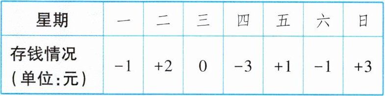 |存钱情况(单位:元)|$-1$|$+2$|$0$|$-3$|$+1$|$-1$|$+3$|