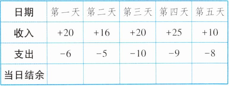 (2)14+11+10+16+2=53(元).答:小明5天后共结余53元.