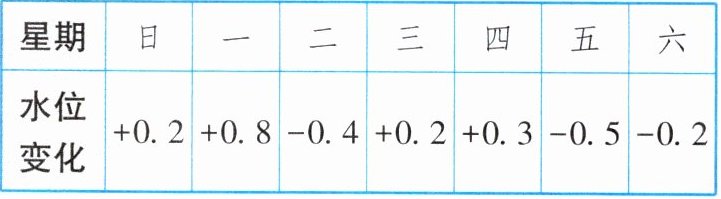 |水位变化|+0.2|+0.8|-0.4|+0.2|+0.3|-0.5|-0.2|