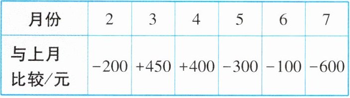 |与上月比较/元|-200|+450|+400|-300|-100|-600|