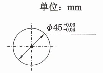 8. 如图,加工一根轴,图纸上注明它的直径是$\varPhi 45_{-0.04}^{+0.03}$,其中$\varPhi 45$表示直径是45mm,+0.03表示合格品的直径最大只能比规定的直径大0.03mm,-0.04表示合格品的直径最小只能比规定的直径小0.04mm,现有四根轴的直径尺寸,其中不合格的是( )