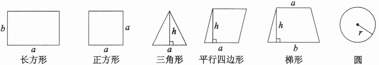 我们可以用公式表示一些常见图形的周长、面积,如图:
