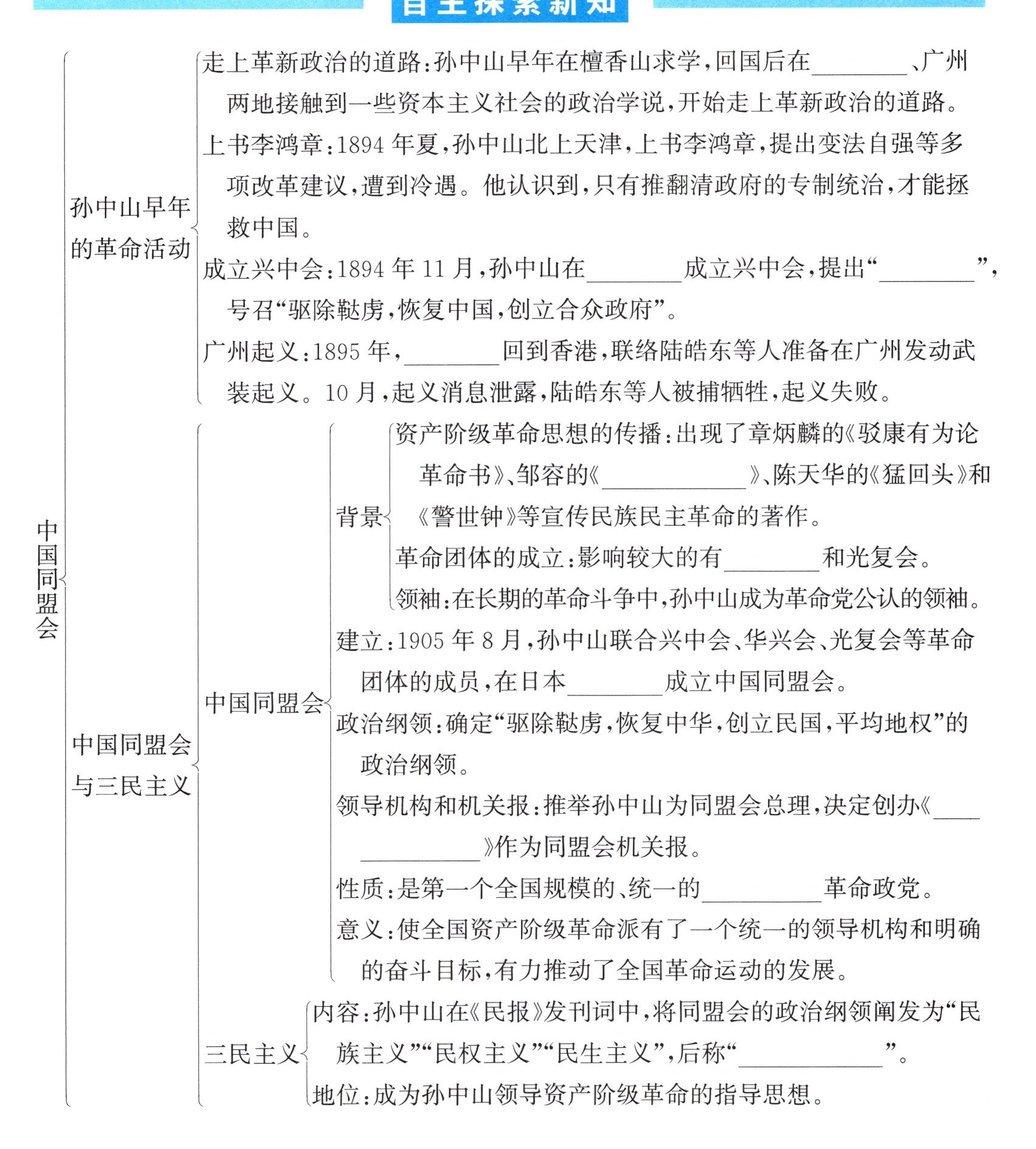 和光复会。领袖:在长期的革命斗争中,孙中山成为革命党公认的领袖。