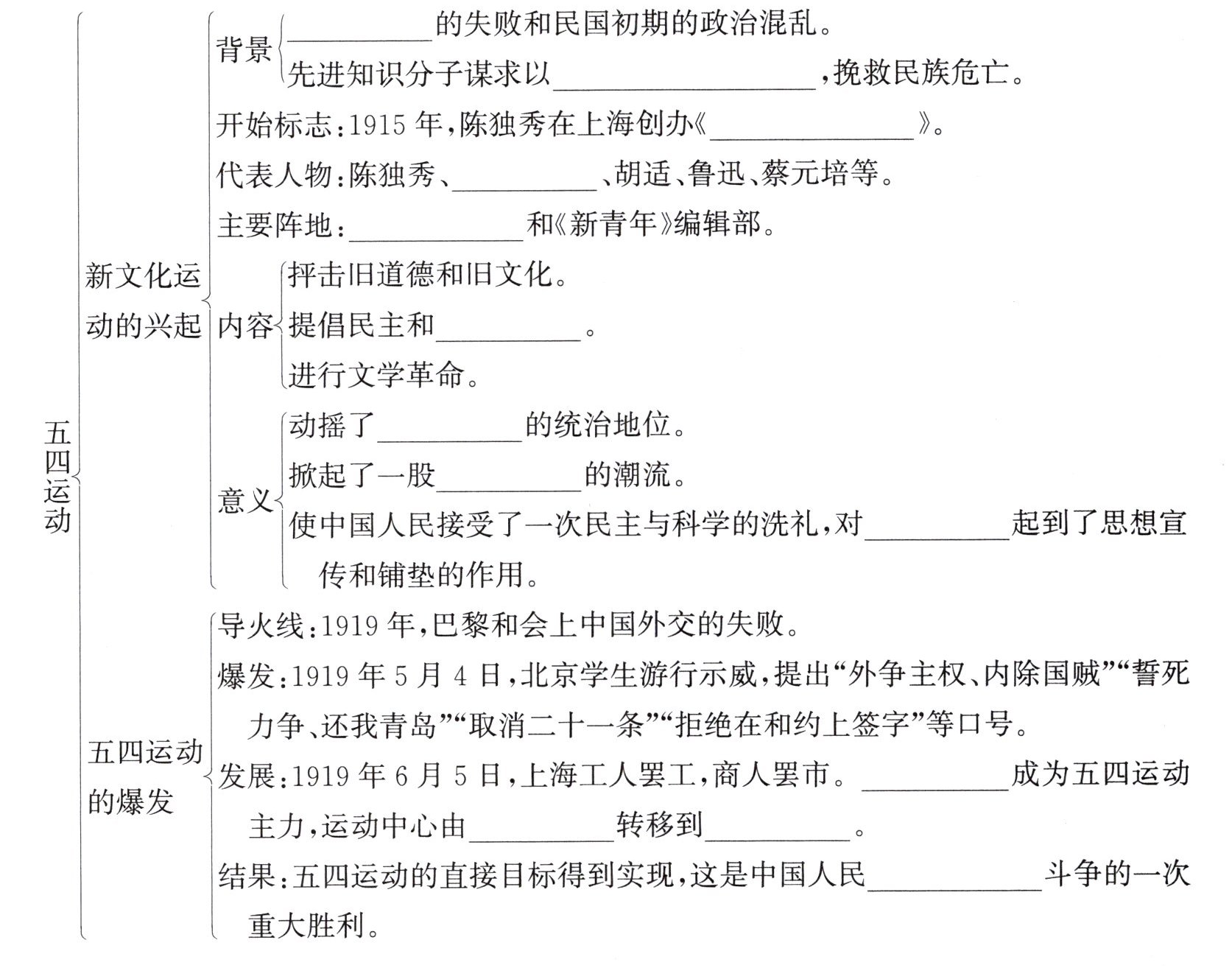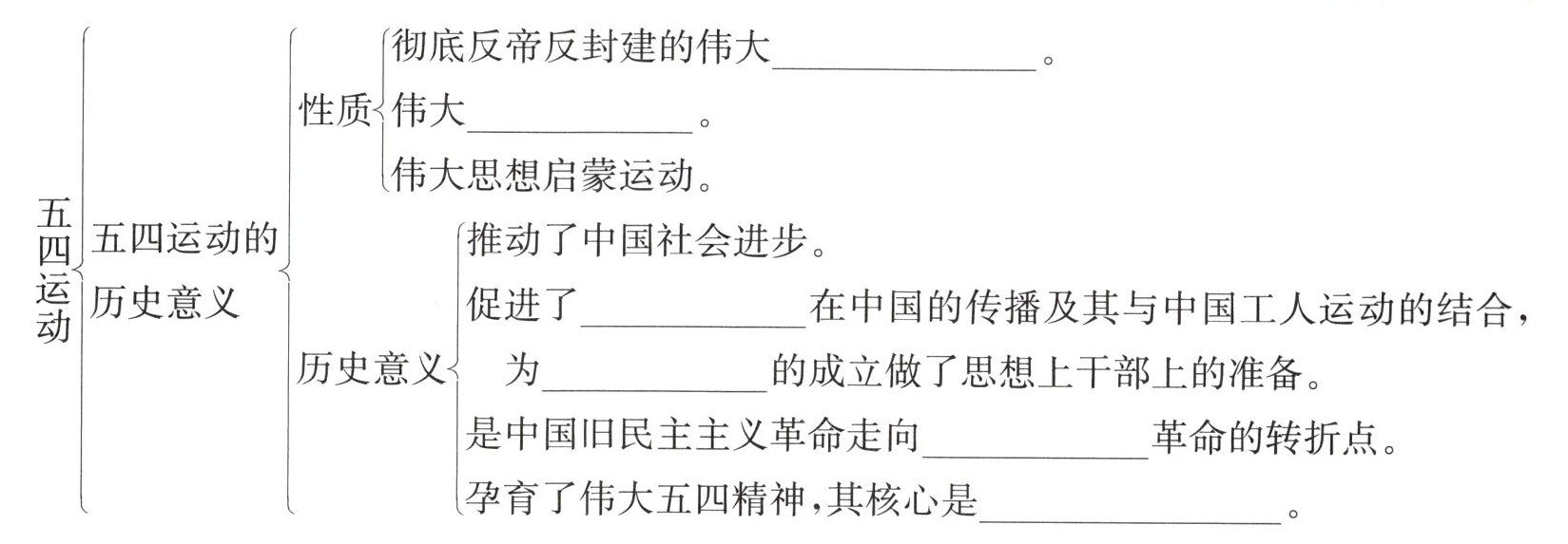辛亥革命 思想文化革新运动 青年杂志 李大钊 北京大学 科学 封建道德礼教 思想解放 五四运动 工人阶级 北京 上海 反帝 爱国革命运动 社会革命运动 马克思主义 中国共产党 新民主主义 爱国主义精神
