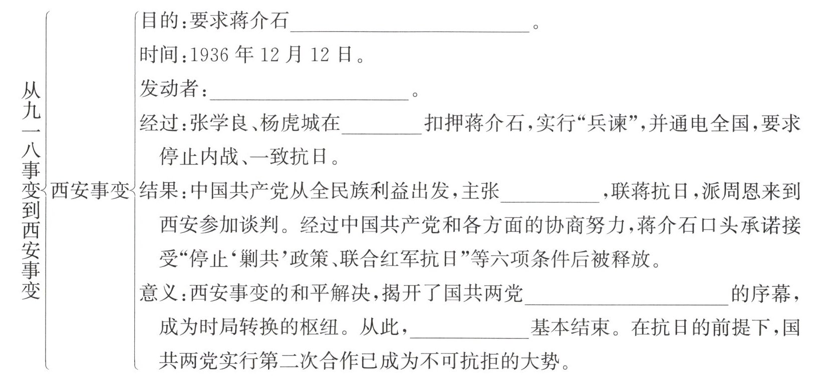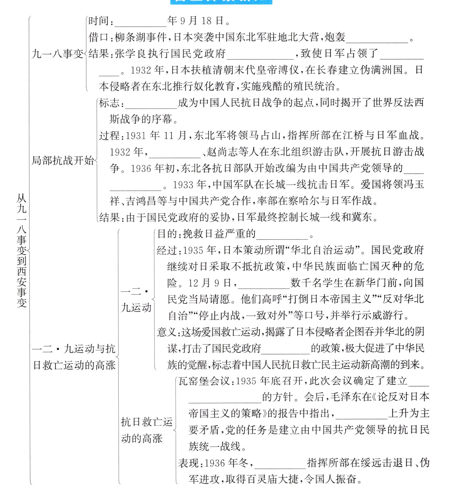 1931 沈阳城 不抵抗政策 东北三省 九一八事变 杨靖宇 东北抗日联军 民族 危机 北平 对日妥协 抗日民族统一战线 中日民族矛盾 傅作义 停止内战、联共抗日 张学良、杨虎城 西安 和平解决 由内战到 联合抗日 十年内战