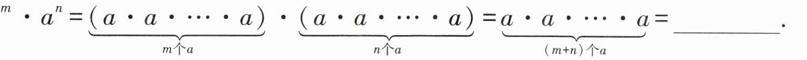 $a^{m}·a^{n} = \underbrace{(a·a·\cdots·a)}_{m个a}·\underbrace{(a·a·\cdots·a)}_{n个a} = \underbrace{a·a·\cdots·a}_{(m + n)个a} =$ 。