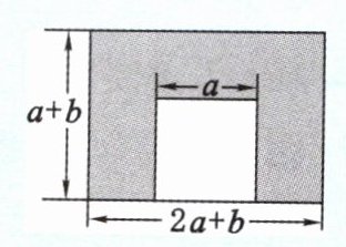 如图,从一个长方形铁皮中剪去一个小正方形,长方形的长为$(2a + b)\mathrm{m}$,宽为$(a + b)\mathrm{m}$,小正方形的边长为$a\mathrm{m}$。