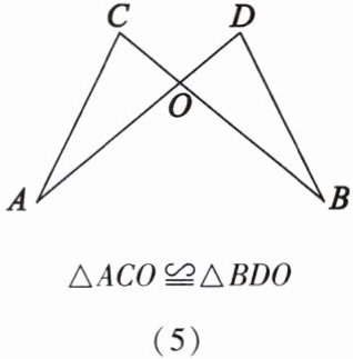(5)对应顶点:点A和点B,点C和点D,点O和点O;对应边:AC和BD,AO和BO,CO和DO;对应角:∠C和∠D,∠AOC和∠BOD,∠OAC和∠OBD。