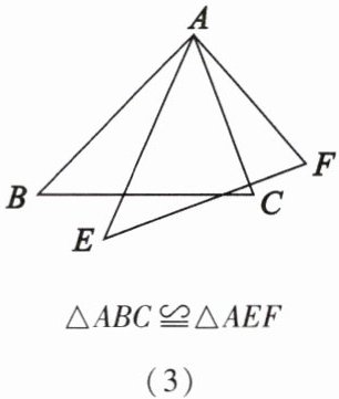 (3)对应顶点:点 A 和点 A,点 B 和点 E,点 C 和点 F;对应边:AB 和 AE,AC 和 AF,BC 和 EF;对应角:∠BAC 和∠EAF,∠B 和∠E,∠C 和∠F。