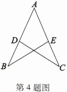 4. 如图,点$D$,$E$分别在线段$AB$,$AC$上,且$AB = AC$,要依据“AAS”判定$\triangle ABE \cong \triangle ACD$,则还需要添加的条件是。