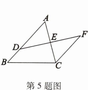 5. 如图,$D$是$AB$上一点,$DF$交$AC$于点$E$。$DE = FE$,$FC // AB$。若$AB = 6$,$CF = 4$,则$BD$的长是()