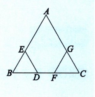 $\begin{cases}BD = CF,\\DE = FG,\\BE = CG.\end{cases}$