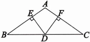 证明:$\because \quad D E \perp A B, D F \perp A C$,