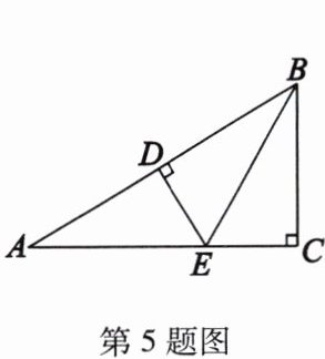 5. 如图,在$\triangle ABC$中,$\angle C = 90 ^ { \circ }$,$DE \perp AB$于点D,交AC于点E,$BC = BD$,若$AC = 8 \mathrm { cm }$,则$AE + DE$的值为(