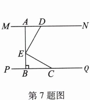7. 如图,$MN // PQ$,$AB \perp PQ$,点A,D在直线MN上,点B,C在直线PQ上,点E在AB上,$AD + BC = 7$,$AD = EB$,$DE = EC$,则$AB =$