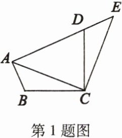 1. 如图,将 $ \triangle ABC $ 绕点 $ C $ 顺时针旋转,点 $ A $ 的对应点为 $ E $,点 $ B $ 的对应点为 $ D $,当旋转角为 $ 90° $ 时,$ A $,$ D $,$ E $ 三点在同一条直线上,则此时 $ \angle E $ 的度数为(