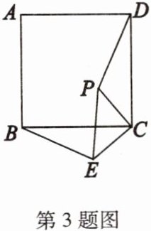 3. 如图,$ P $ 为正方形 $ ABCD $ 内的一点,$ PC = 1 $,将 $ \triangle CDP $ 绕点 $ C $ 逆时针旋转得到 $ \triangle CBE $,则 $ PE = $