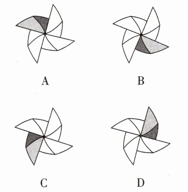 1. 如图,在平面内将风车绕其中心旋转 $ 180° $ 后所得到的图案是(