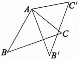 2. 如图,$ \triangle ABC $ 绕着点 $ A $ 逆时针旋转后得到 $ \triangle AB'C' $,若 $ \angle BAC' = 130° $,$ \angle BAC = 80° $,则旋转角等于