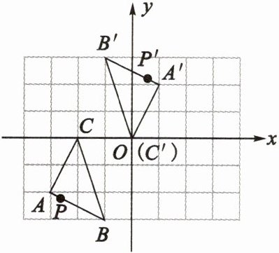 4. 如图,把 $ \triangle ABC $ 经过一定的变换得到 $ \triangle A'B'C' $,如果图中 $ \triangle ABC $ 上的点 $ P $ 的坐标为 $ (a,b) $,那么它的对应点 $ P' $ 的坐标为
