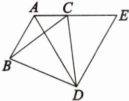8. 如图,在$\triangle ABC$中,$\angle BAC = 120^{\circ}$,以$BC$为边向外作等边三角形$BCD$,把$\triangle ABD$绕点$D$按顺时针方向旋转$60^{\circ}$后到$\triangle ECD$的位置. 若$AB = 6$,$AC = 4$,求$\angle BAD$的度数和$AD$的长度。